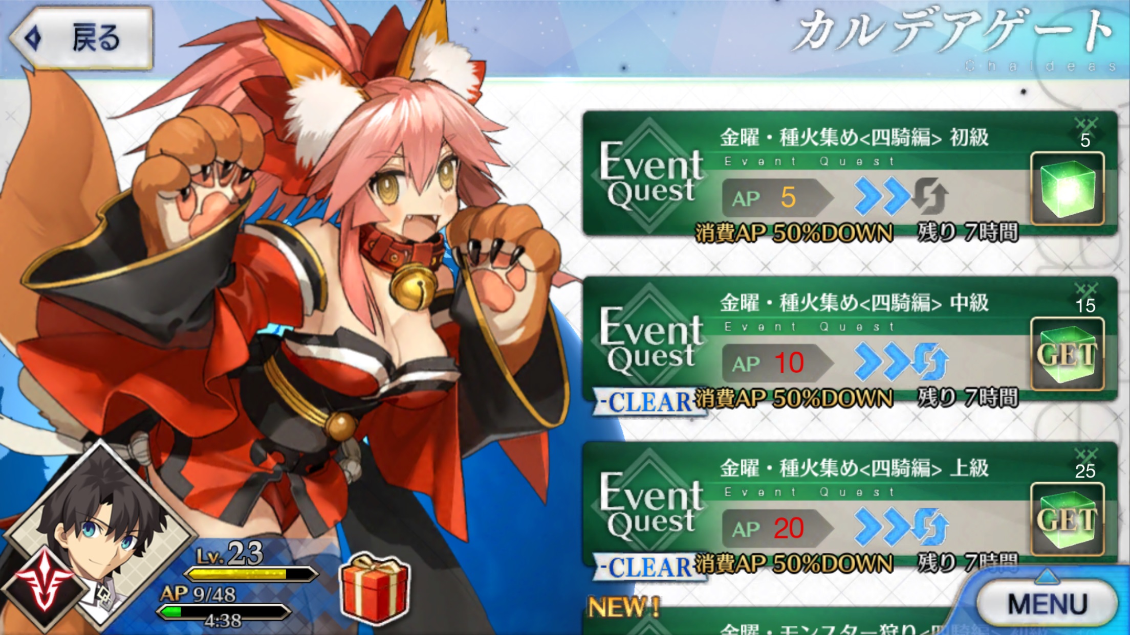 Fatego 経験値を稼げる曜日クエスト 種火集め 四騎編 を攻略 火曜 金曜日クエスト Appmedia